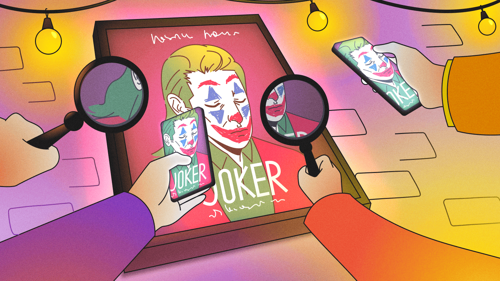- Люди и персонажи: узнаваемые лица звёзд вызывают доверие и искренний интерес, а их позы и мимика создают настроение всей работе.